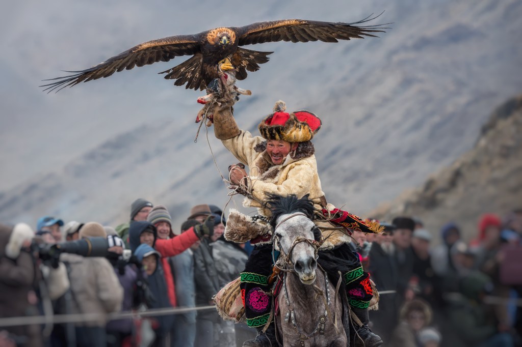 The Golden Eagle Festival is an annual event held in Western Mongolia to celebrate the traditional hunting skills of the Kazakh eagle hunters.